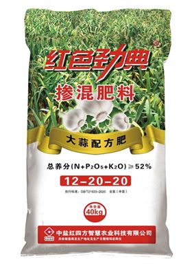 红色劲典大蒜专用肥掺混配方肥52%(12-20-20)大蒜专用复合肥料,更高产、更稳产。
